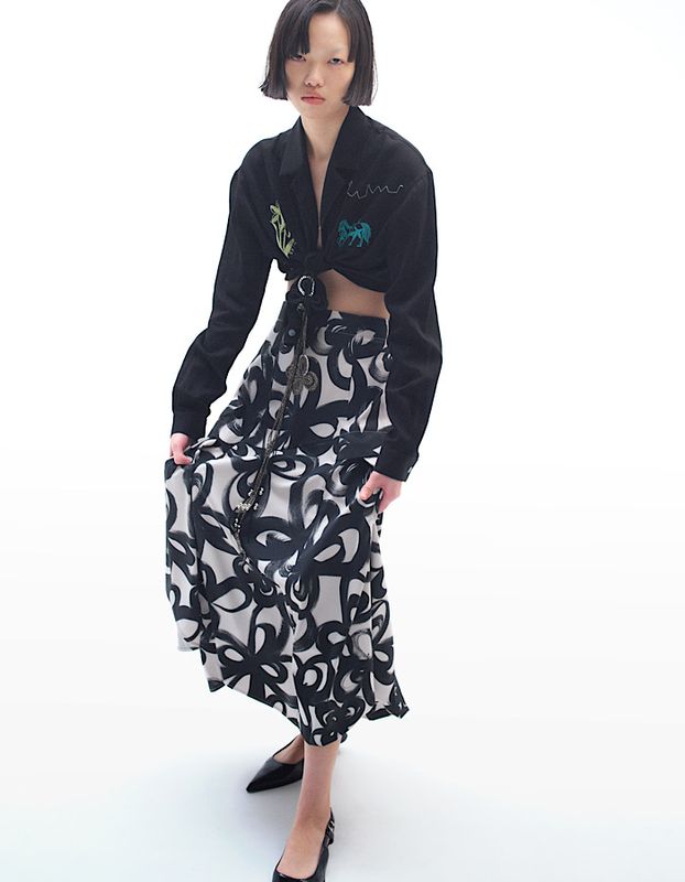 "Chain Flower" Print Skirt / black