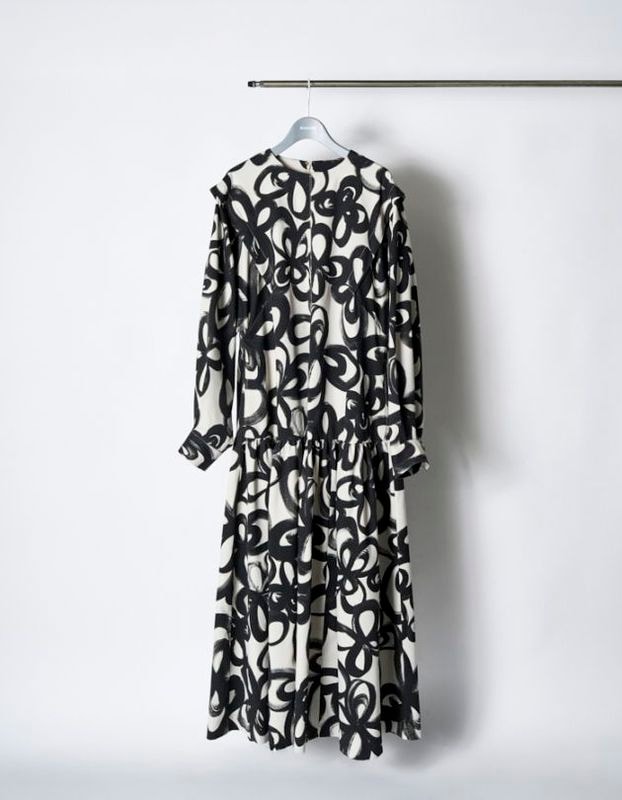 "Chain Flower" Print Dress / black